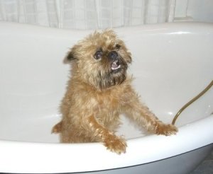 For a while The Rules disappeared.  I think we painted the office, and the sign was thrown away.   Unfortunately, I was the cause of the re-instatement.  The Rules were posted again after I started bringing my dog Gigi to work.  Gigi is an 8 lb Brussels Griffon who is about as intimidating as a teddy bear.  She is very high strung and neurotic, and I think the work environment was a bit too much for her.  She clearly defined who was acceptable in the office or not.  There was no problem with any of the regular office workers.  She loved them and would greet them every morning.  She also loved my dad and would try to sit on his lap all day.  She also found no problem with customers, since they stay on the other side of the pay counter and do not enter into the inner sanctum of the office.  However, if a porter dared enter into her domain, he did so at his own risk.  Her first victim was Julio.  Several of us were standing around talking, including my dad and myself, and Gigi was standing in our midst as if part of the conversation.  Julio walked around the back of the group, behind Dad, and Gigi darted out and bit Julio on the ankle.  I truly believe that in her mind she was protecting us from Julio.  She didn’t break the skin, but it was quite a shock for us all.  Gigi had never shown any sign of aggression, and she was eight years old.  Gigi also hated Rolando, but he usually wears rubber boots so he’s protected from Gigi’s snaggly, little teeth.  Julio was not injured in anyway, but he did not enter the office ever again when Gigi was there.